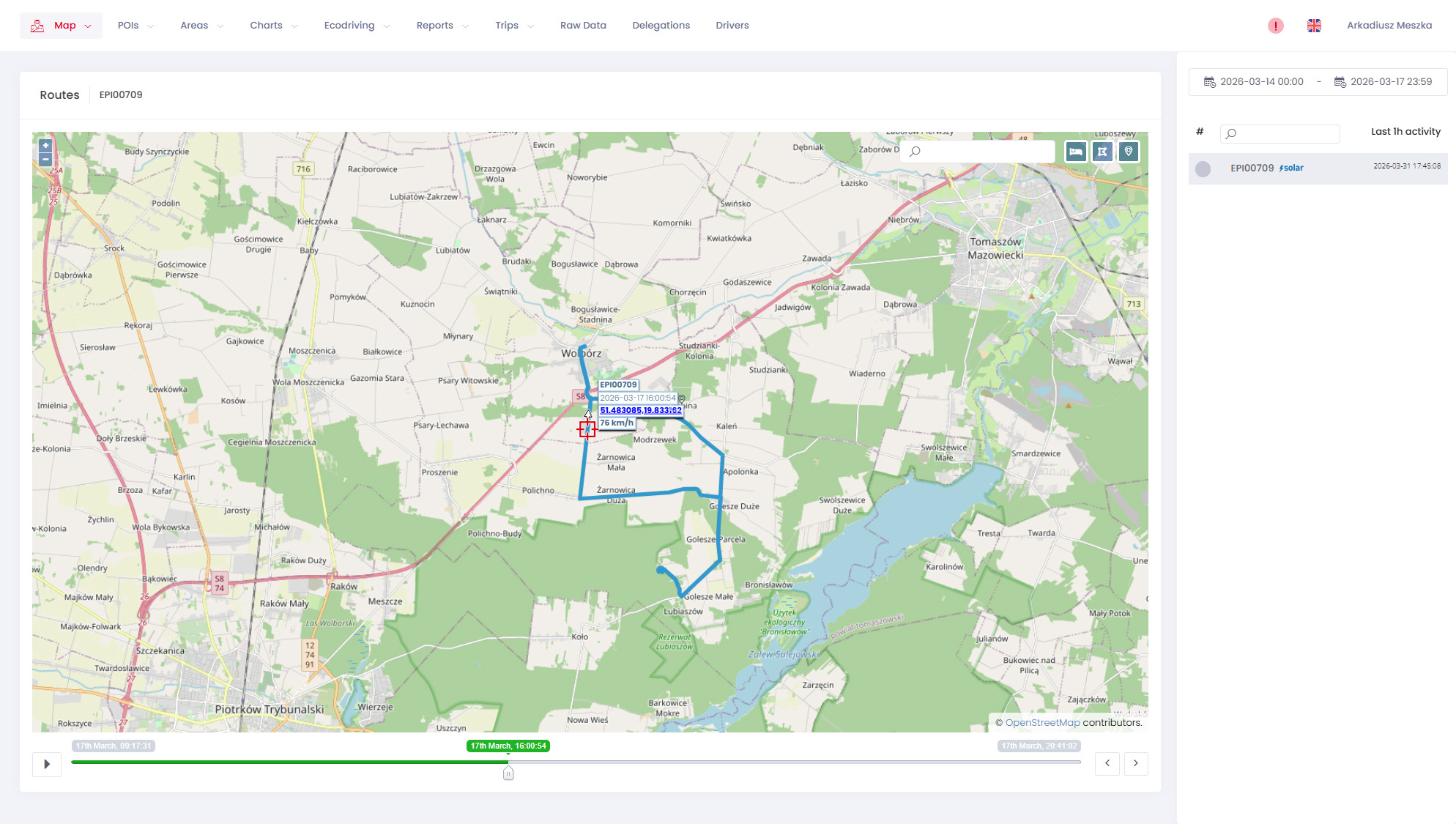 Pozycja pojazdu aktualizowana w panelu co 3 sekundy — masz zawsze bieżący obraz sytuacji na drodze, bez opóźnień.