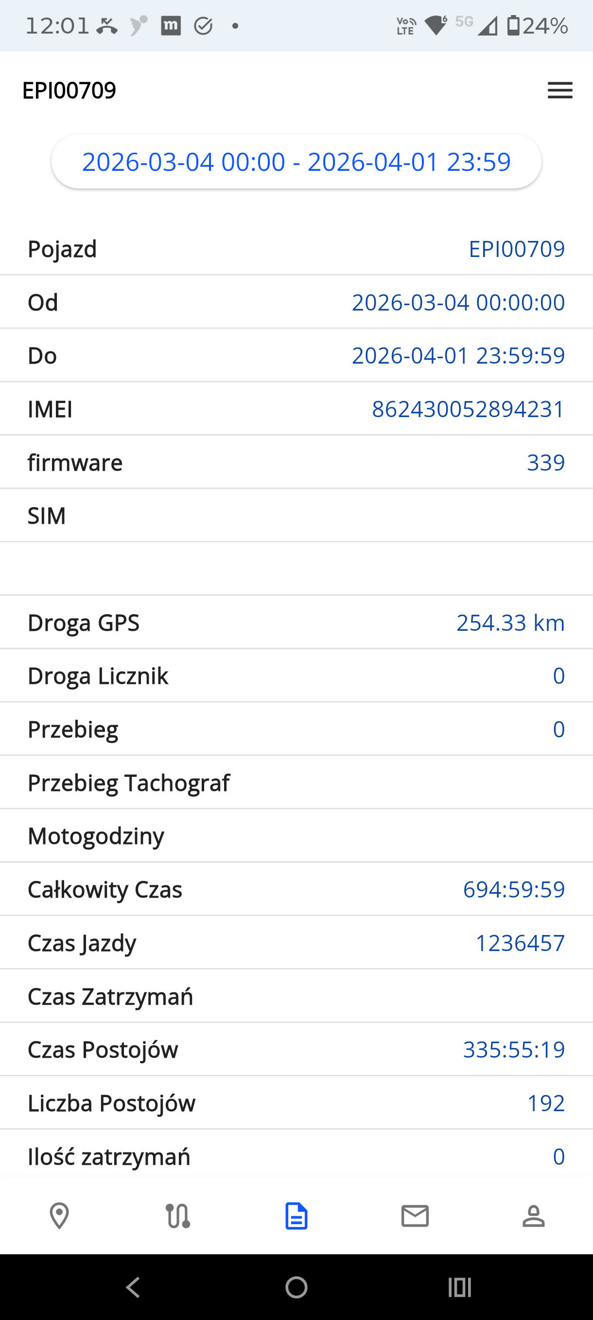 Generuj szczegółowe raporty z podziałem na jazdy i postoje — z informacjami o dystansie, czasie i prędkości maksymalnej. Wszystko dostępne z poziomu telefonu.
